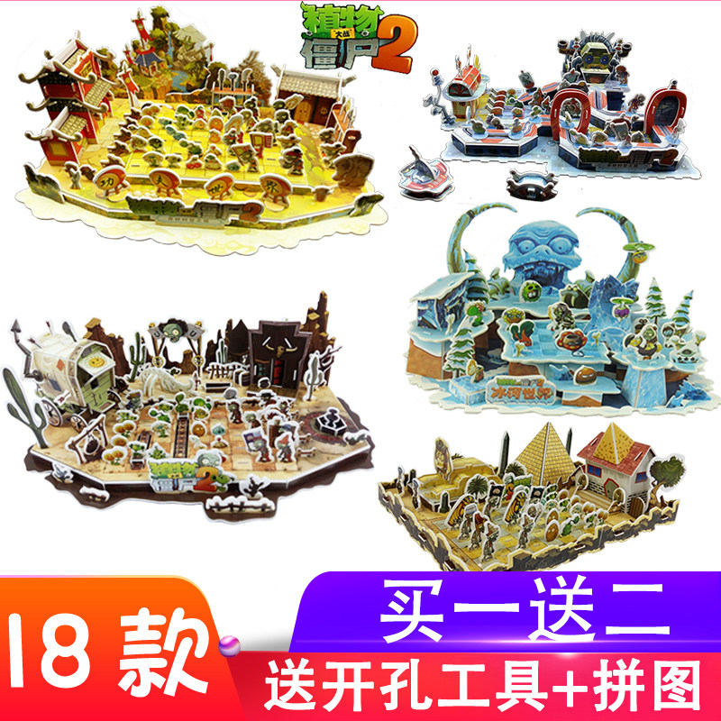 高质量拼装植物大战僵尸3D立体拼图男孩纸质DIY模型儿童z玩具礼物热门设计联盟服务商