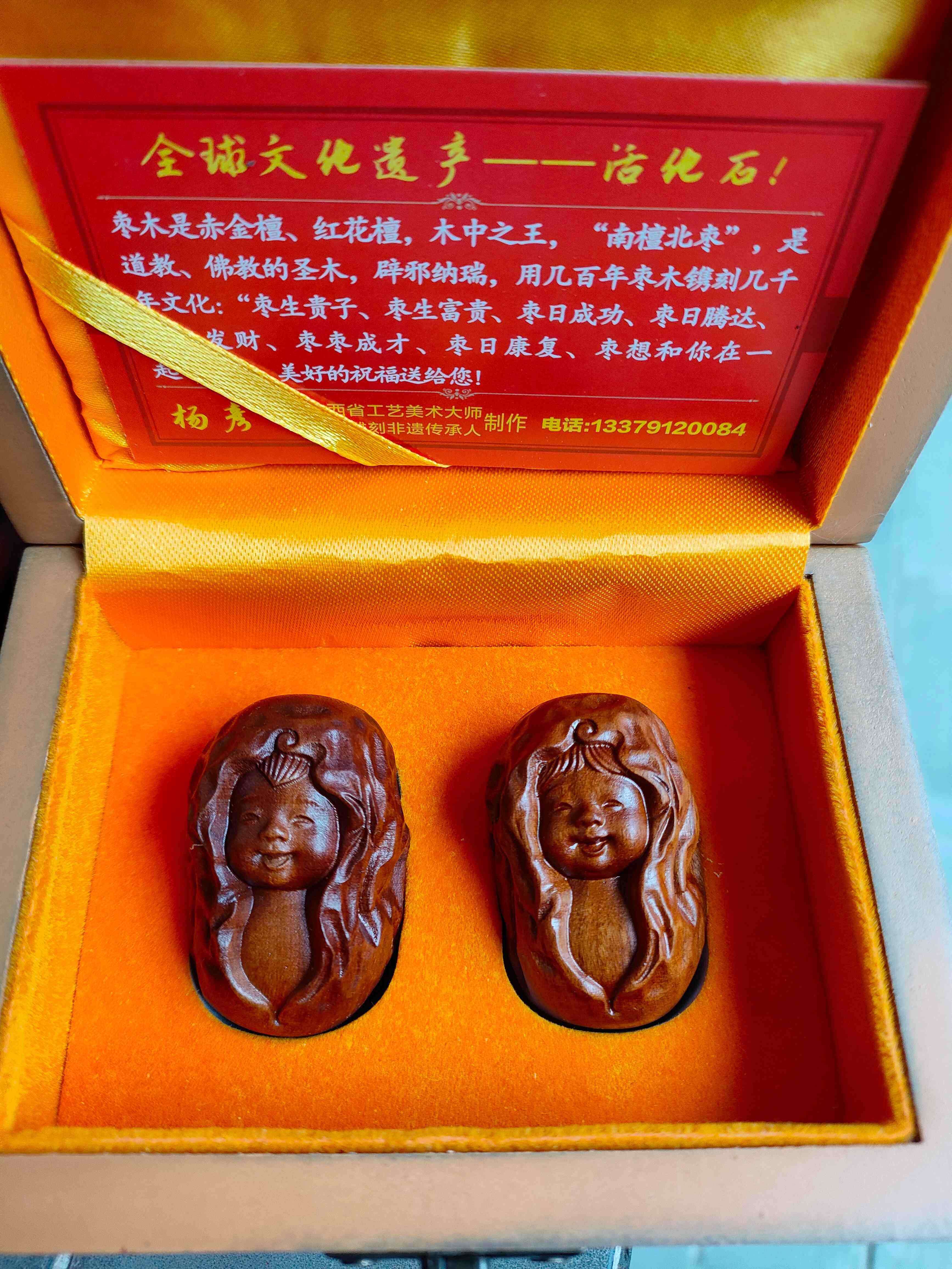 信天游红枣木创意设计雕刻枣文化作品枣生贵子(双胞胎)可佩戴把热门设计联盟服务商