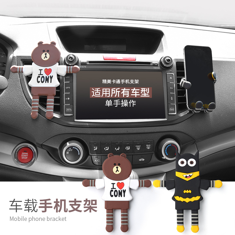 车载手机支架可爱小熊玩偶空调口手机架百变卡通汽车出风口导航